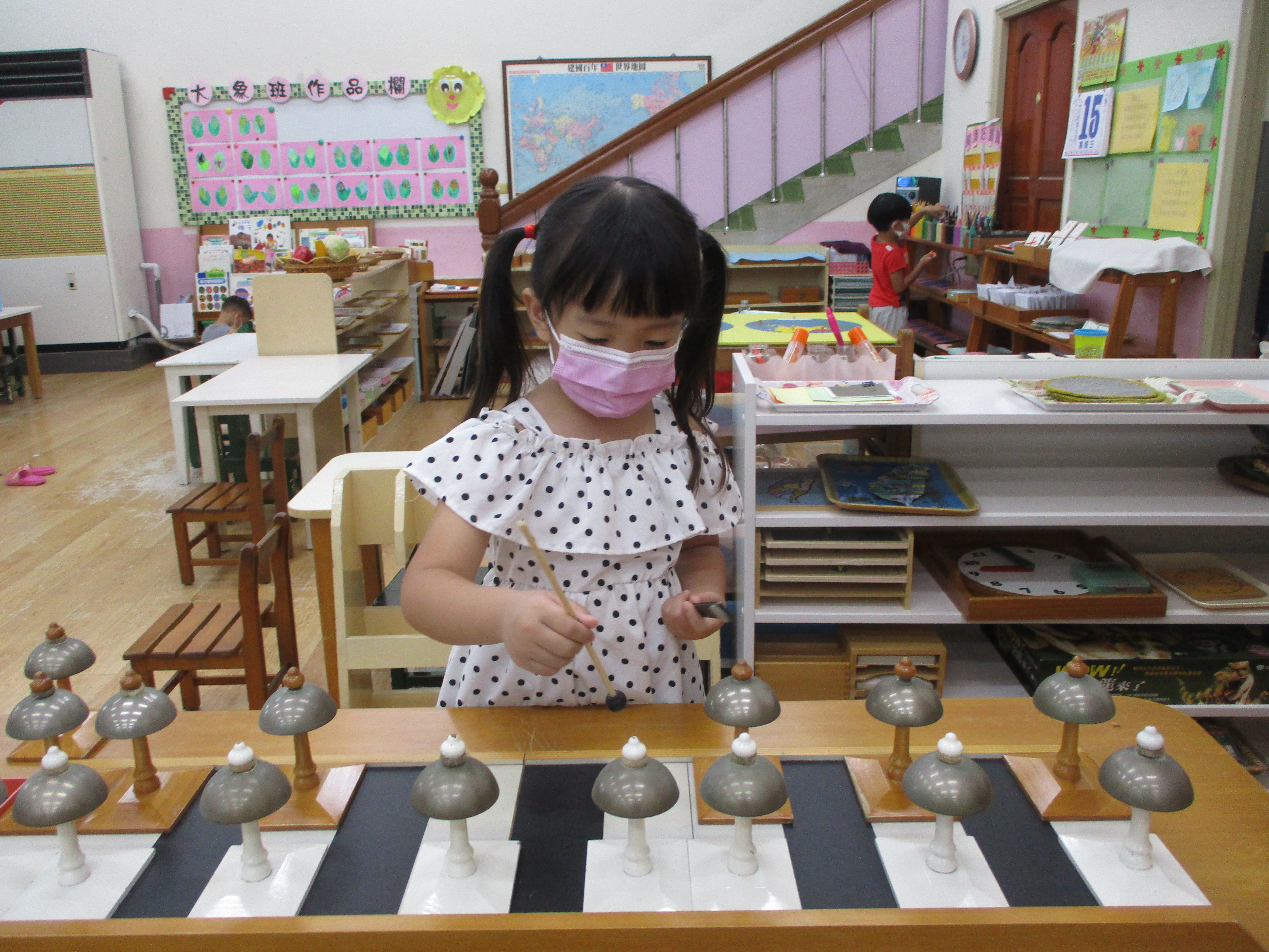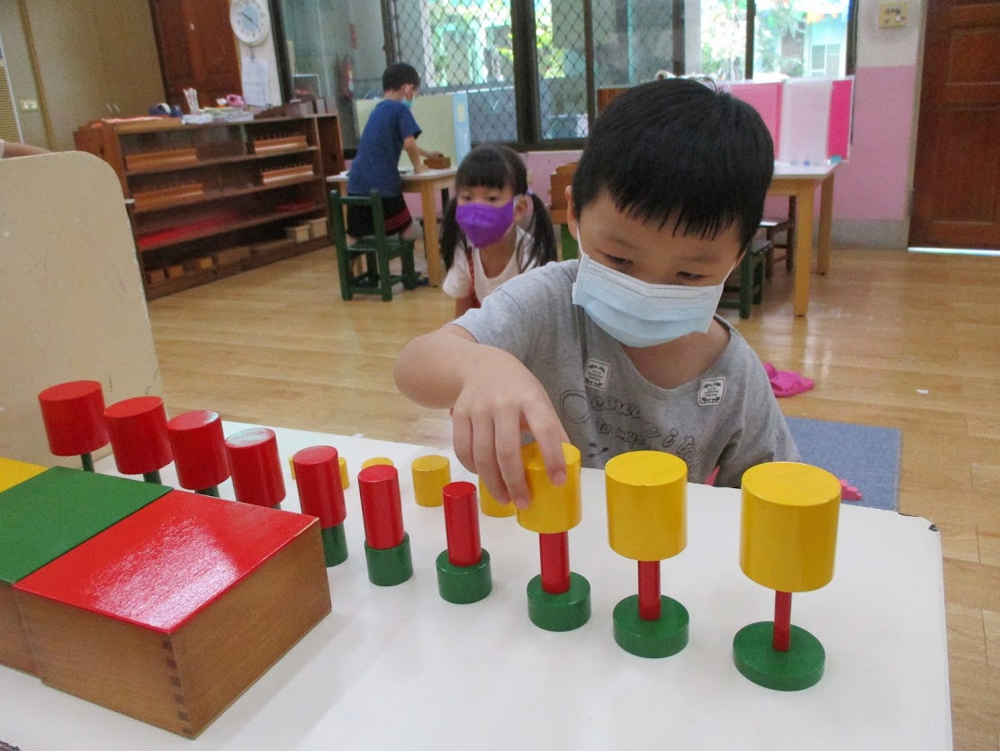 人類憑著感官來認知世界,蒙特梭利女士設計的感官教具都各自擁有不同的特質,例如:大小、顏色、重量、材質、形狀、味道或聲音,透過孩子親身的探索,發展了視、聽、嗅、味、觸的感覺器官,累積出對環境中事物特徵與特質的概念,並且由於感官知覺的不斷經驗,提高了孩子對外在環境的敏銳觀察力。