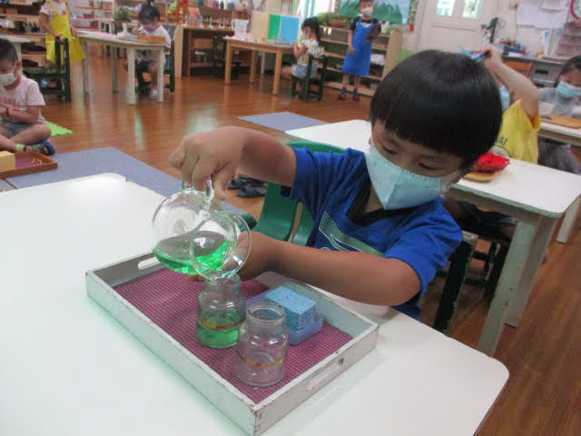 由手到腳到全身的協調以達手眼的配合,不但讓孩子架構心智,亦幫助孩子建立能力,知道在其生活的環境中他能做什麼,並知道以正確的方法去做,去學習照顧自己,照顧環境,幫助別人,並從工作中培養專注立,建立獨立性,養成尊重自己,尊重環境,尊重別人的美德。這些動作經驗,也是孩子日後智能學習的基礎。