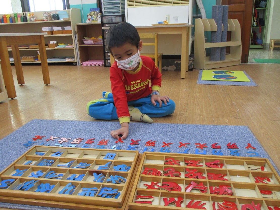 蒙特梭利根據人類語言發展的特性,從「聽」開始,到增進字彙、書寫的預備、閱讀與文法等等,有計畫地帶領幼兒進入語文的奇妙世界,證明世界上的任何兒童,都可以在語文敏感期,經由正確的引導,發展出令人驚奇的效果。
